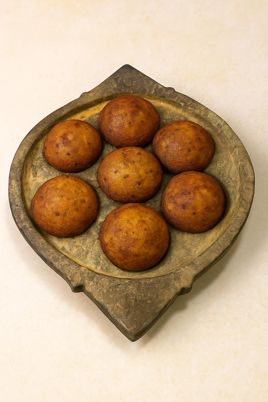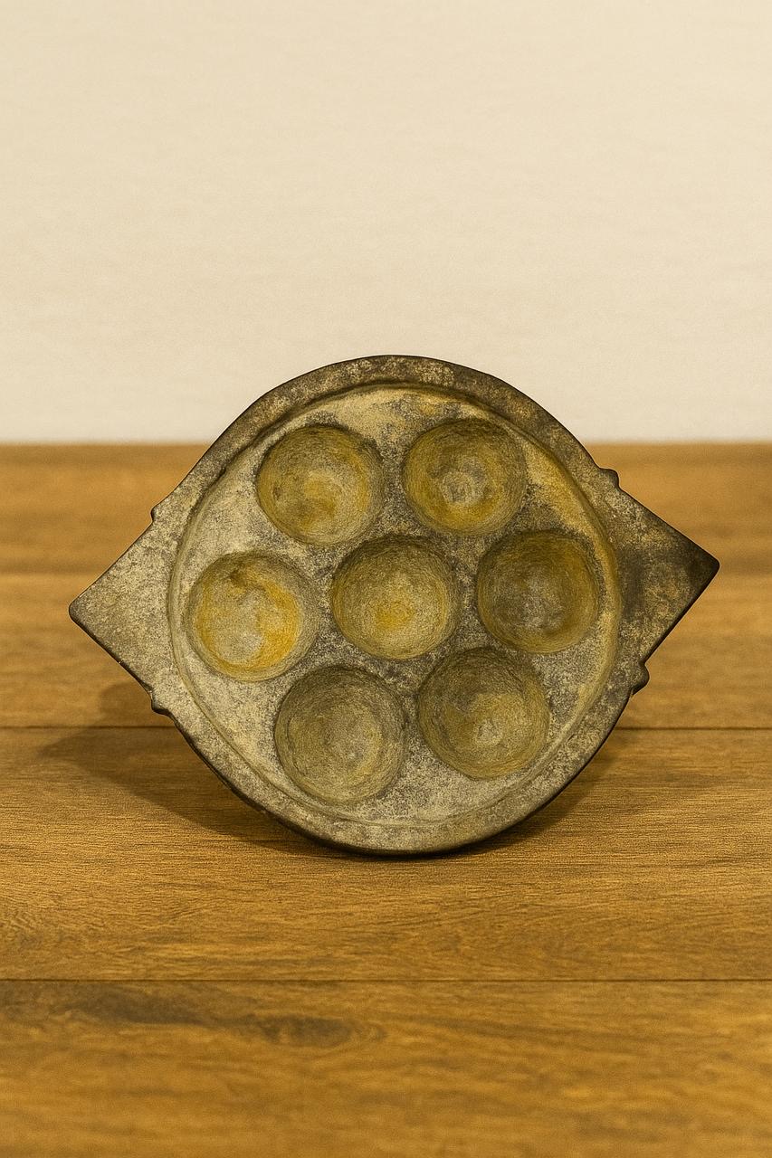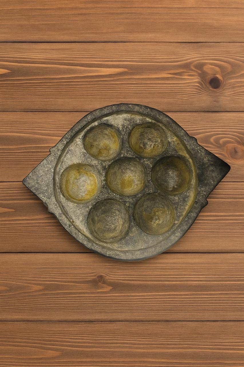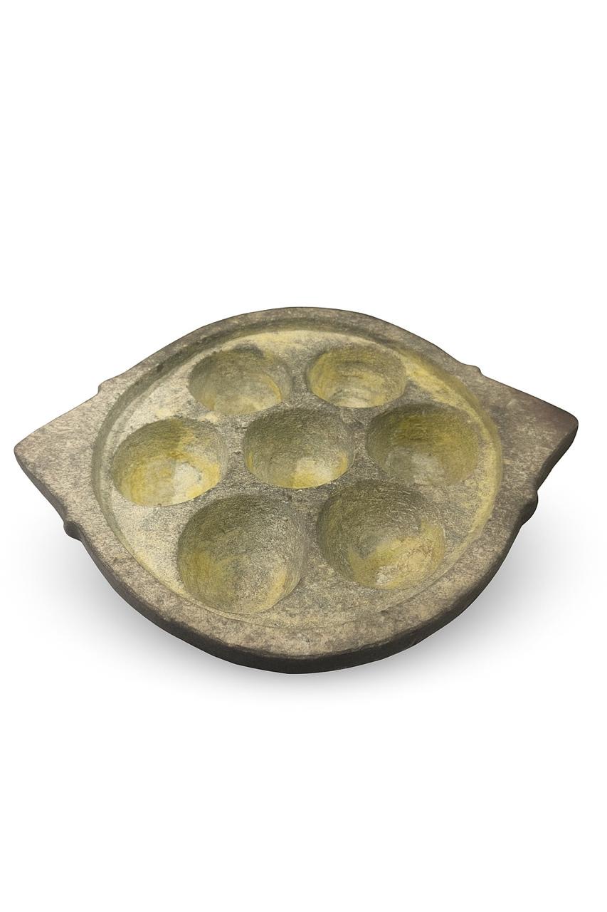 Experience the authentic taste of South India is a traditional South Indian cookware made from naturally occurring soapstone (also known as Kalchatti or Maakal). It features 7 small pits (kuli) for making paniyaram (appe, paddu, or kuzhi paniyaram) — a beloved South Indian delicacy.
