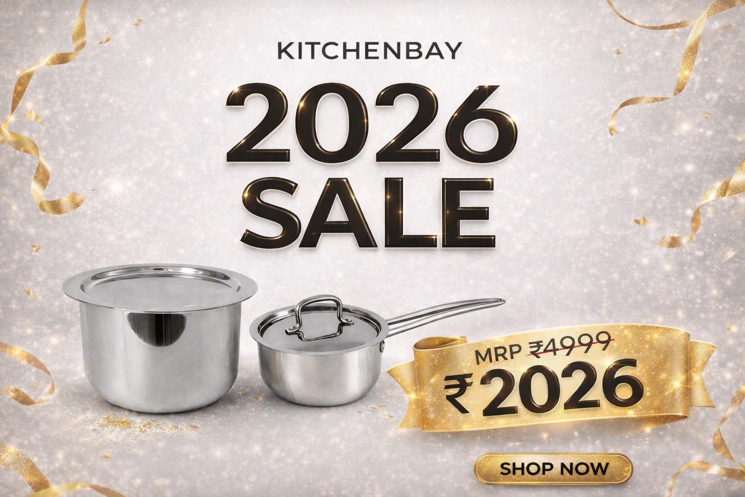 Upgrade your kitchen with the Kitchenbay Duo Cookware Set with Topes (3.1L) & Wok Pan (2L). Designed for everyday Indian cooking, this 4-piece stainless steel cookware set offers durability, efficient heat distribution, and long-lasting performance.