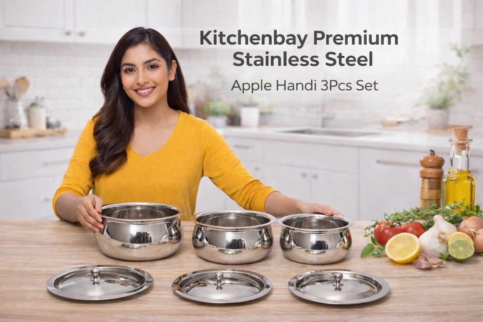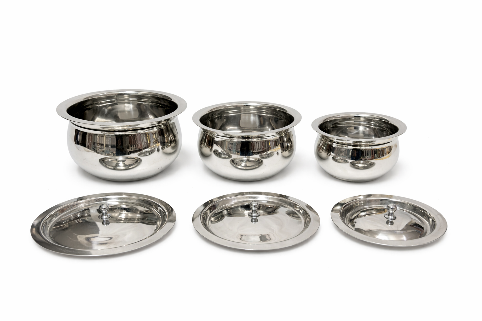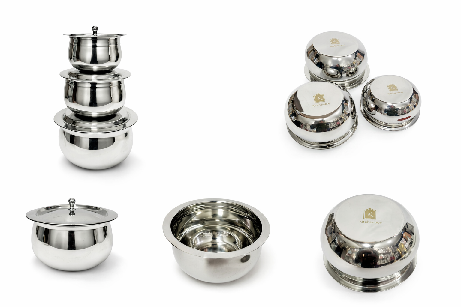 Upgrade your kitchen with the Kitchenbay Stainless Steel 6-Piece Apple Design Handi/Patila/Bhagona Cookware Set — a versatile, durable, and stylish solution for everyday cooking and serving. Crafted from high-quality stainless steel with an induction-compatible bottom, this set delivers superior performance, long-lasting strength, and easy maintenance.