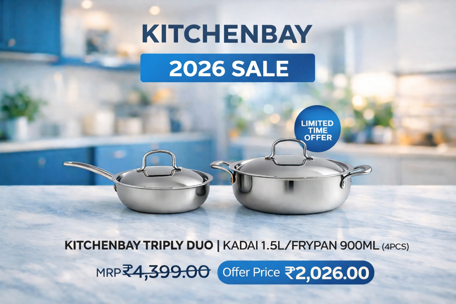 1 review for KITCHENBAY TRIPLY DUO | KADAI 1.5L/FRYPAN 900ML (4PCS)