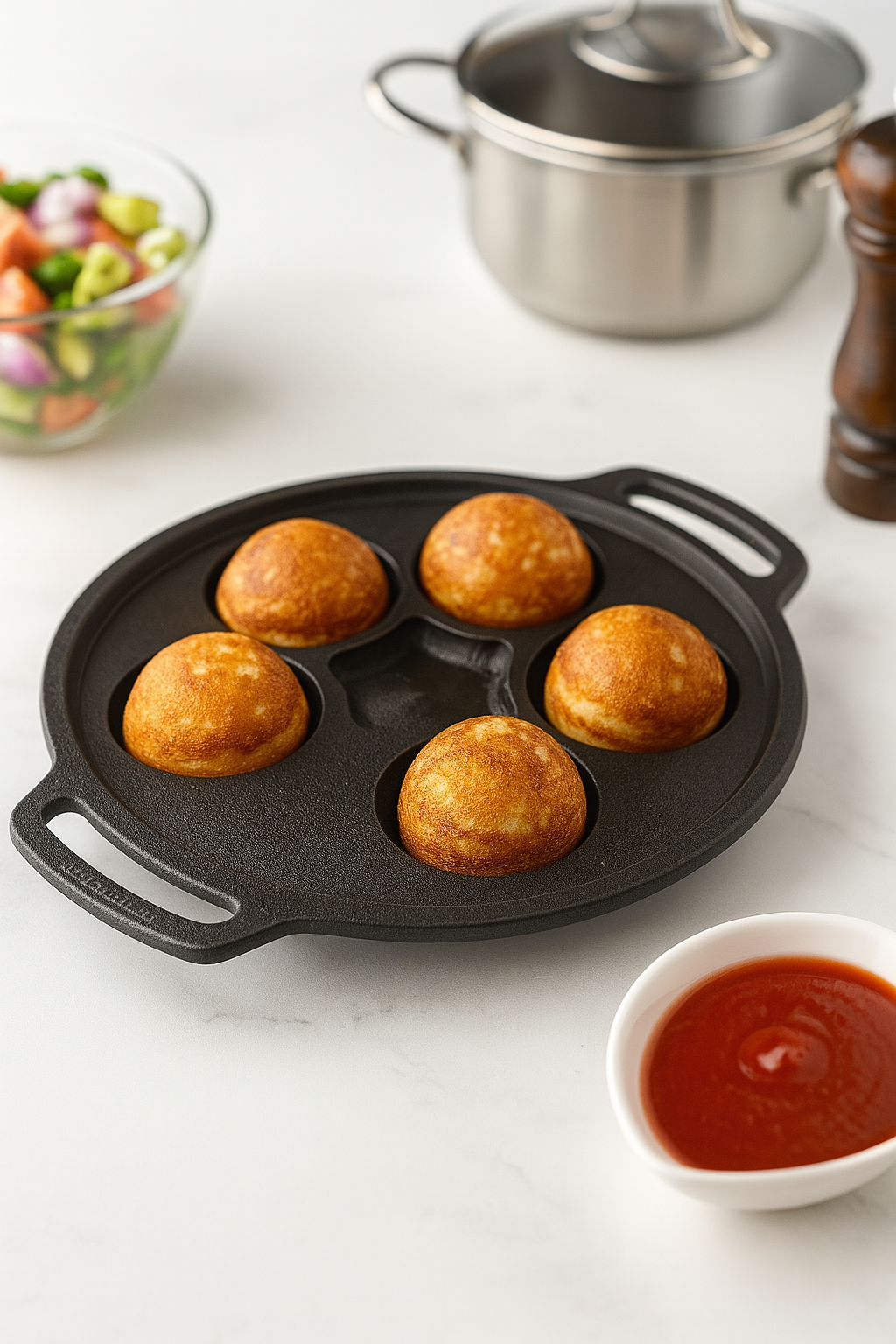 Each mini uttapam you make in this pan carries the taste of tradition, the warmth of iron, and the love of home cooking. Whether you’re preparing a quick breakfast or serving a healthy snack platter, the 5-Pit Cast Iron Uttapam Pan is your trusted, timeless companion