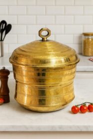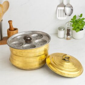 Experience authentic South Indian cooking with this handcrafted Brass Idli Panai – 9 Kuli, a traditional steamer designed for preparing soft and fluffy idlis the traditional way. Made from high-quality brass, this durable and eco-friendly cookware not only ensures even heat distribution but also adds a nostalgic charm to your kitchen.