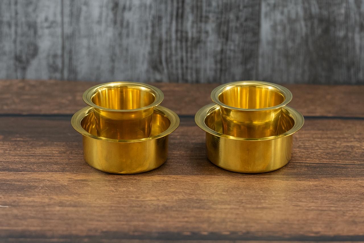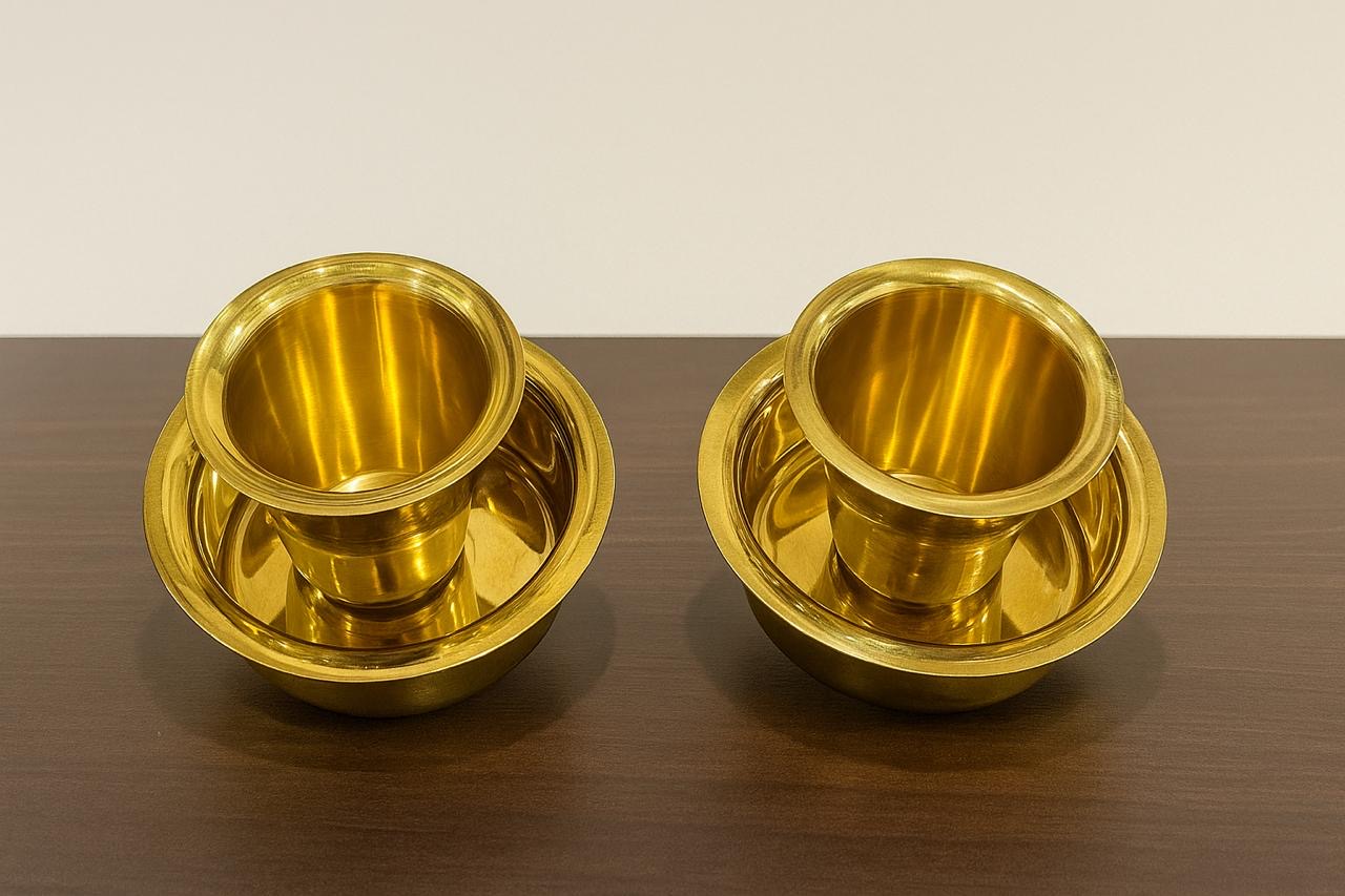 Relive the charm of authentic South Indian filter coffee with this Pure Brass Dabara Set (4 pcs). Handcrafted by skilled artisans, this set includes 2 tumblers and 2 dabaras (saucers), made from 100% pure brass – known for its elegance, durability, and traditional value.