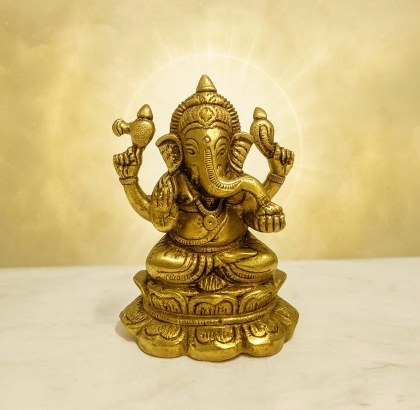 PURE BRASS LORD GANESHA IDOL/STATUE: Invite prosperity, wisdom, and success into your space with this intricately crafted Pure Brass Lord Ganesha Idol. Made from high-quality, solid brass, this statue features Lord Ganesha, the remover of obstacles and the deity of new beginnings, in a traditional and graceful posture.
