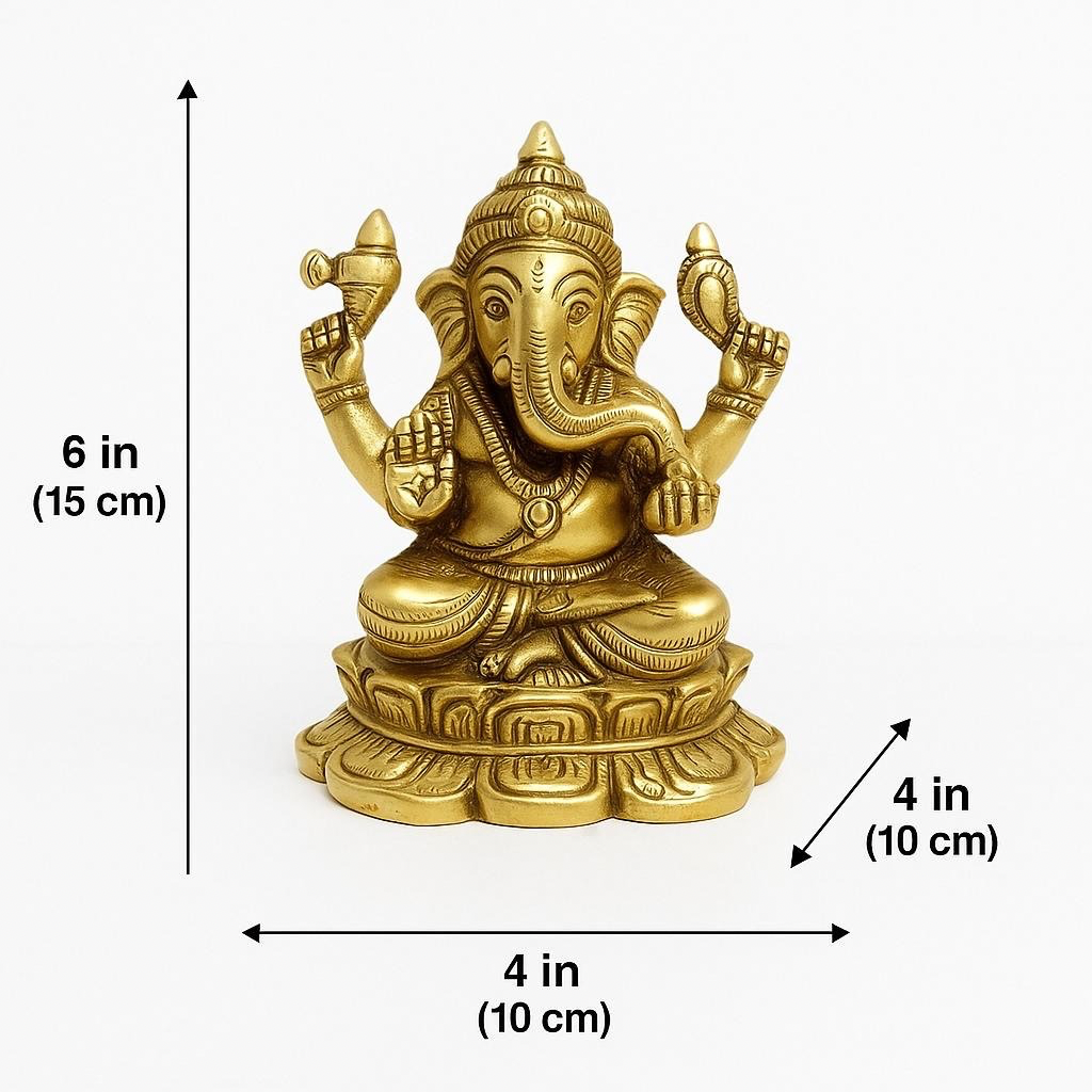 With fine detailing — from the crown and trunk to the modak (sweet) and lotus — this idol reflects the beauty of traditional Indian craftsmanship. The rich golden hue and antique finish add to its divine presence, making it a powerful addition to your home, office, or sacred space.