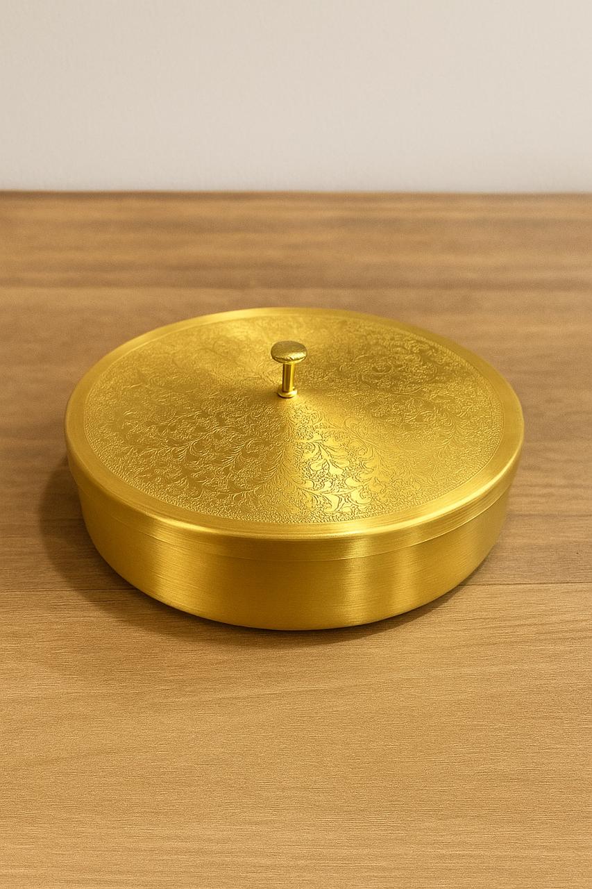 Featuring multiple compartments to store your essential spices, this masala box is perfect for daily cooking rituals. The sturdy lid ensures freshness, while the warm, golden hue of brass brings a classic aesthetic that complements both traditional and modern settings.