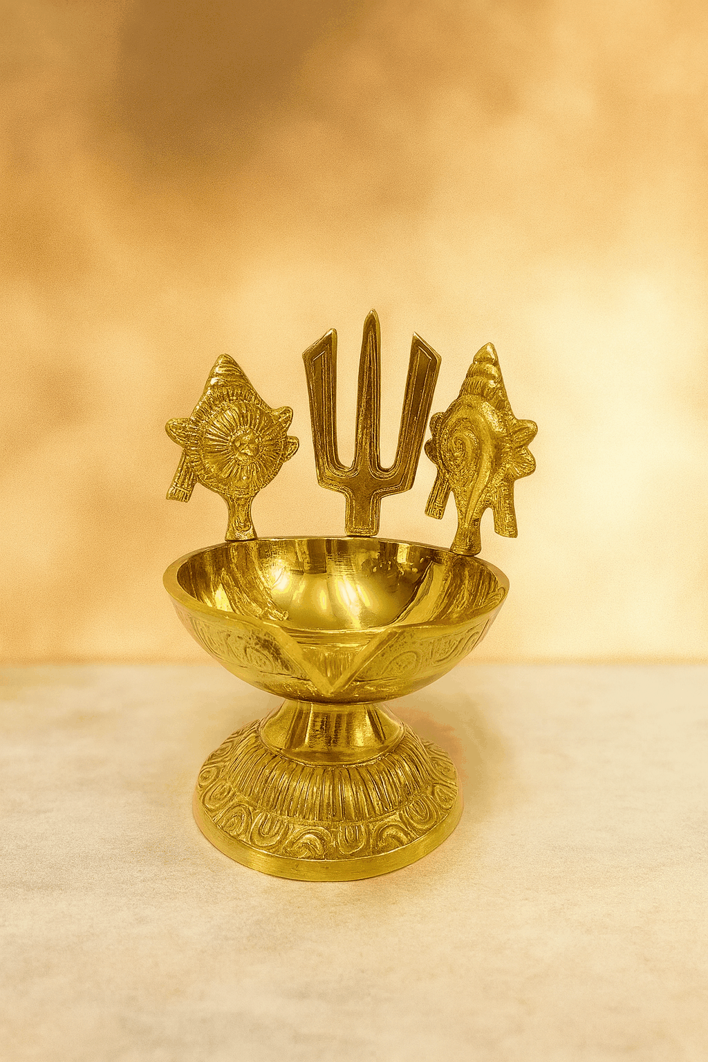 PURE BRASS PERUMAL SANGU CHAKRA VILAKU/DIYA