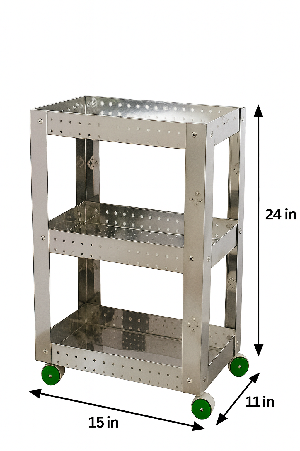 Upgrade your kitchen organization with this sleek and durable 3-Tier Stainless Steel Multipurpose Trolley. Designed to save space and add convenience, this pre-assembled trolley is perfect for storing vegetables, fruits, groceries, or other kitchen essentials. Crafted from high-quality stainless steel, it offers long-lasting durability, rust resistance, and a modern look that fits any kitchen decor.