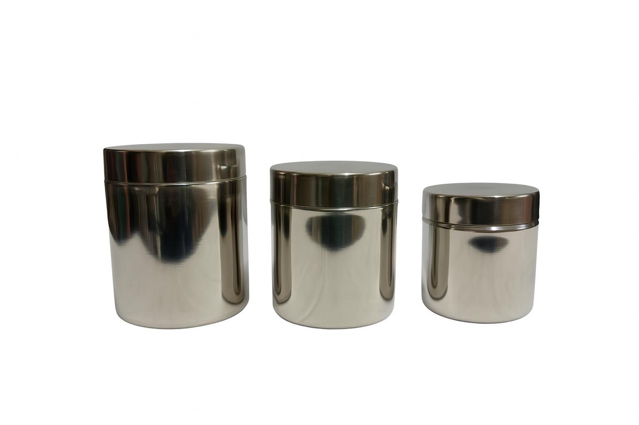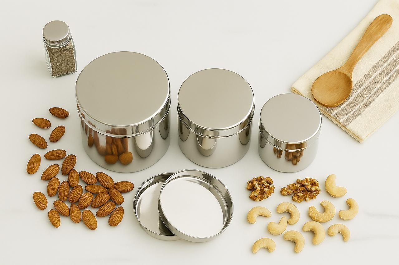 Stainless Steel Canister / Storage Container – Set of 3: Keep your kitchen organized in style with our Stainless Steel Canister Set – a sleek, durable trio designed for modern storage needs. Made from high-quality, food-grade stainless steel, these containers are perfect for storing tea, coffee, sugar, spices, pulses, or snacks while maintaining freshness and hygiene.