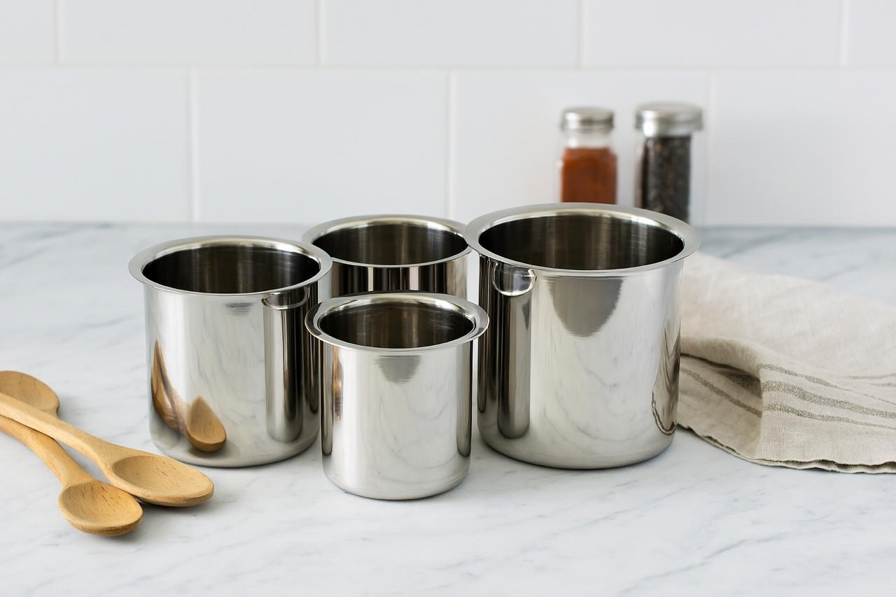 STAINLESS STEEL KARAIKODI TOPS SET OF 4PCS: Experience the blend of tradition and quality with our Stainless Steel Karaikudi Tops Set of 4. Inspired by the rich heritage of Karaikudi craftsmanship, these storage containers are crafted from premium, food-grade stainless steel for long-lasting durability and shine.
