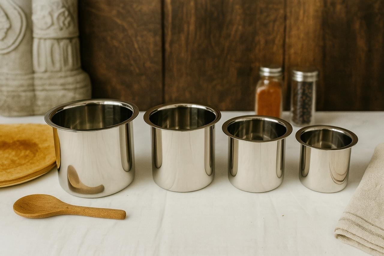 Perfect for modern and traditional kitchens alike, this elegant 4-piece set brings home the trusted legacy of South Indian kitchenware — strong, stylish, and built to last.