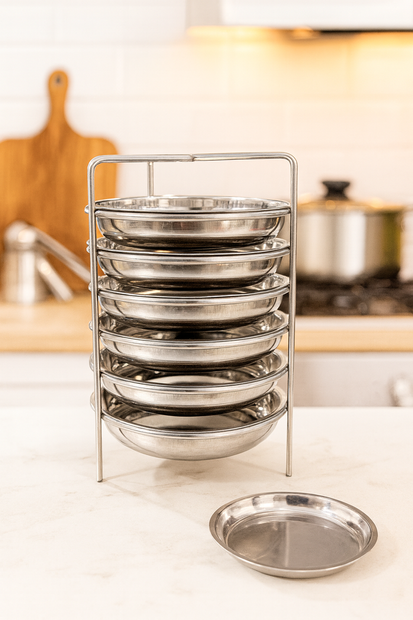 Elevate your South Indian cooking with the Stainless Steel Premium 6 Plate Thattu Idly set – specially designed for making large, soft, and fluffy thattu idlis (plate idlis). Crafted with high-quality food-grade stainless steel, this set is perfect for homes, restaurants, and catering services.