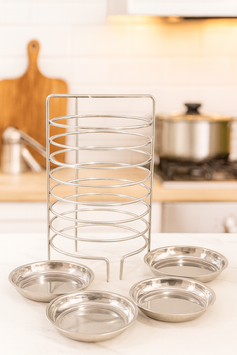 ✅ 6 heavy-duty stainless steel plates included
